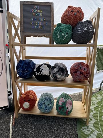 Super soft, round, and extra cuddly cat filled like a pillow. Fostering kittens for our local shelter during the pandemic was a saving grace for me and my family. So I knew I had to crochet something cat related. $5 of each sale will be donated to MADACC to help support their valuable work.